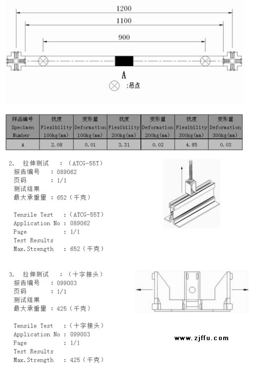 3).單支每一M荷重300kg時繞度6.27mm載重變形量為0.16mm