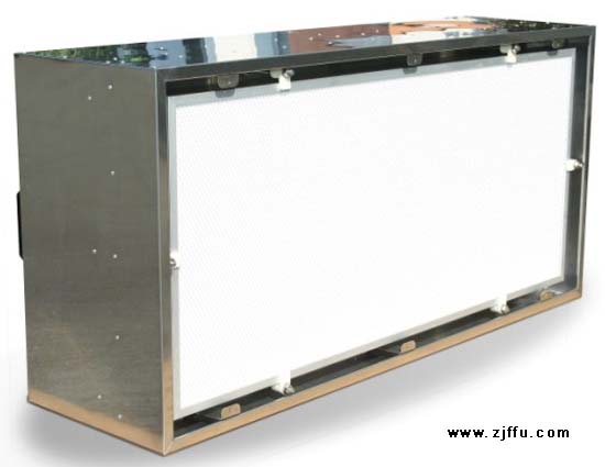 FFU層流送風單元模塊可連接使用.使得FFU廣泛應用潔凈室、超凈工作臺、潔凈生產線、組裝式潔凈室和層流罩等應用場合。FFU設有初、高效兩極過濾網。風機從FFU頂部將空氣吸入并經初、高效過濾器.過濾后的潔凈空氣在整個出風面0.45m/s±20%的風速勻速送出。