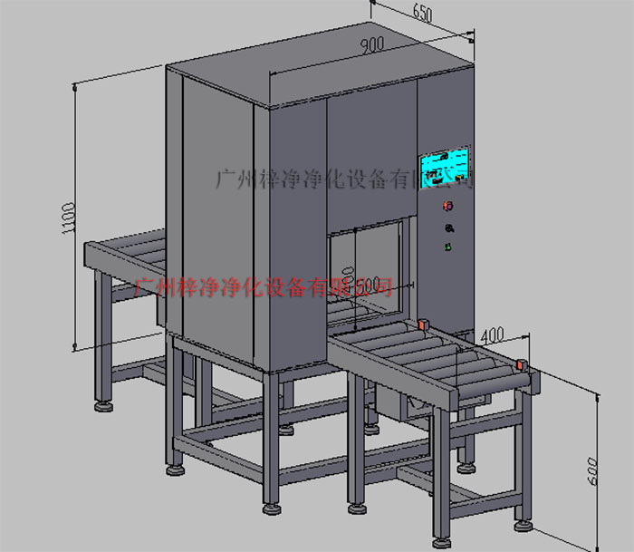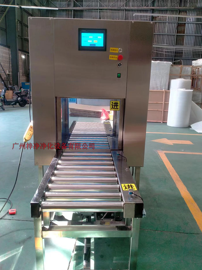 1、貨物進入前端輸送帶→前端升降門自動開啟→貨物進入傳遞窗內→升降門自動關閉→紫外線燈手動控制開關→設定滅菌時間完畢→后端升降門自動打開貨物完全通過→后端升降門自動關閉→貨物在未端輸送帶停止→待貨物取走后方可開啟下一次輸送。