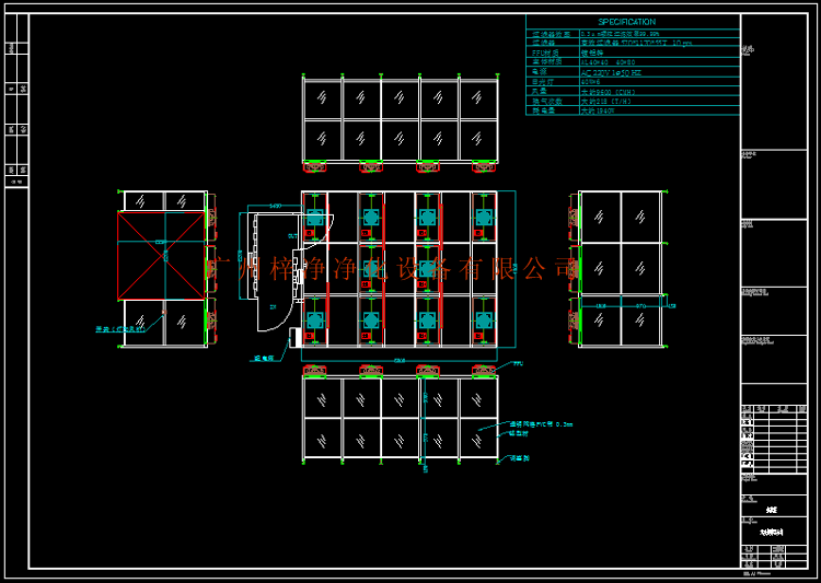 6.潔凈棚由FFU風機過濾單元經初效過濾器進行第一道過濾,再經過高效過濾器第二道過濾后,整個出風面以勻速送出到潔凈棚內,使潔凈空氣氣流呈垂直單向流,保證工作區內所要求的潔凈度。