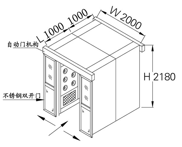 5、按設定的時間吹淋完后,內門打開,人/貨走出;